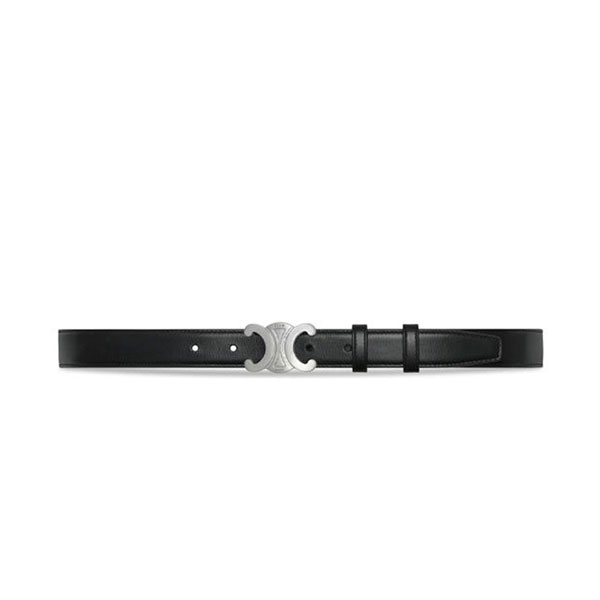 celine 皮帶選用了上等的平滑小牛皮,觸感細緻光滑,皮質柔軟且有彈性,隨著使用會逐漸顯示出自然的光澤感。皮帶的銀色扣環設計簡潔又具有現代感,搭配 CELINE 的經典 Triomphe 凱旋門標誌,為這款皮帶增添了辨識度。皮帶寬度為2.5cm,這是最為經典的設計寬度,既不過寬也不過窄,能夠輕鬆搭配各類褲裝與裙子,為整體穿搭增添精緻感。