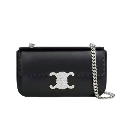 CELINE Triomphe 凱旋門 亮面皮革鏈條單肩包 腋下包 女款 黑銀