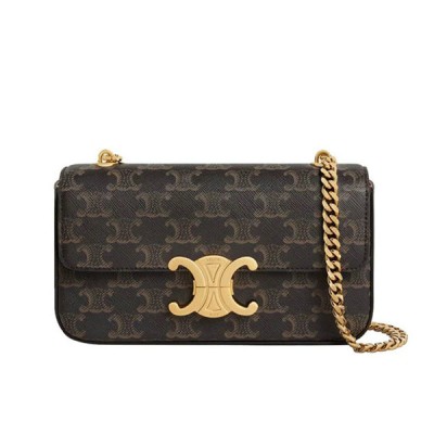 CELINE Triomphe凱旋門 經典老花帆布鏈條單肩包 女款 棕色