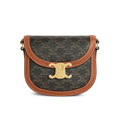 CELINE TRIOMPHE FOLCO 經典老花皮革馬鞍包 單肩斜挎包 中號 女款 黃褐色
