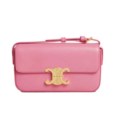 CELINE Triomphe 凱旋門亮面小牛皮腋下包 單肩包 女款 糖果粉