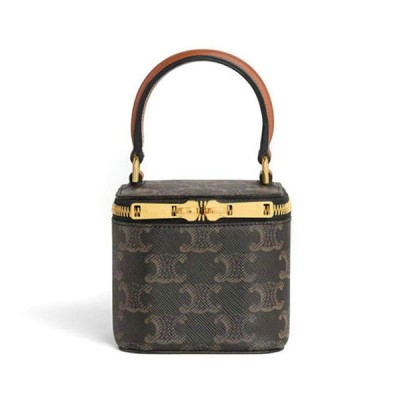 CELINE TRIOMPHE 迷你帆布皮革化妝包 盒子包 女款 棕色