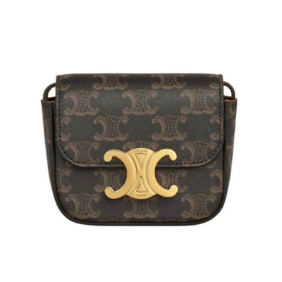 CELINE Triomphe 凱旋門經典印花迷你單肩斜挎包 腰包 耳機包 女款 棕色
