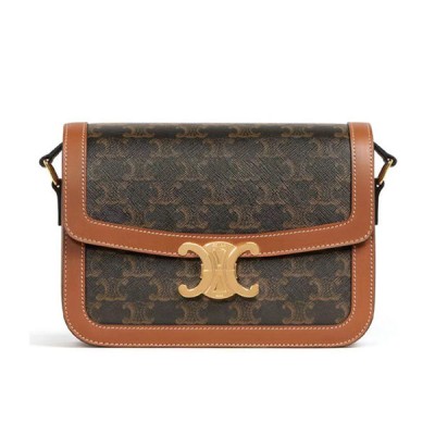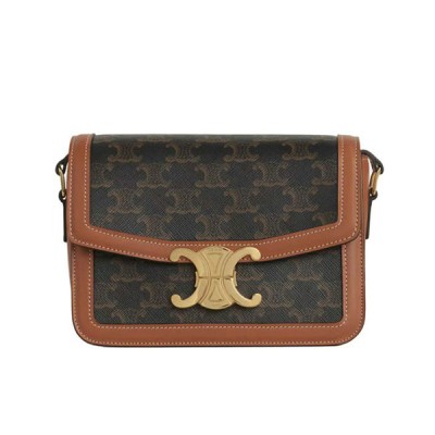 CELINE Triomphe 凱旋門系列 牛皮革單肩斜挎包 小方包 豆腐包 女款 棕色