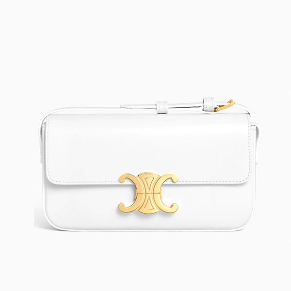 CELINE Triomphe 手袋是2018年創意總監 Hedi Slimane 入主後帶來的首批代表作之一,回溯1970年代 CELINE 創立早期的復古「凱旋扣」元素,延用 Classic 系列的經典翻蓋設計。這款CELINE包袋,延續小巧修長的矩形輪廓和凱旋搭扣元素,可調節皮革肩帶,拋光閃亮的 Triomphe 凱旋金屬扣是包包上最引人注目的設計元素,如同一件精美的浮雕裝飾,包含了諸多讓人凝視和回味的細節。