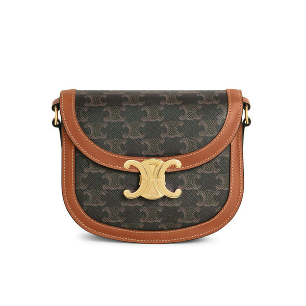 Celine Triomphe系列包款又被稱為凱旋門包,由設計師Hedi Slimane操刀設計,以凱旋門周遭的鎖扣為靈感打造的金屬包扣既典雅又深具品牌識別度,Teen Besace Triomphe包款以圓潤的輪廓取代以往方正的包型,但延續了復古翻蓋設計。採用經典老花帆布皮革製作,加上經典凱旋門金屬扣環的點綴,將Celine凱旋門包款以近似馬鞍包的姿態重新演繹,打造出兼具復古與俏皮的時尚氛圍!